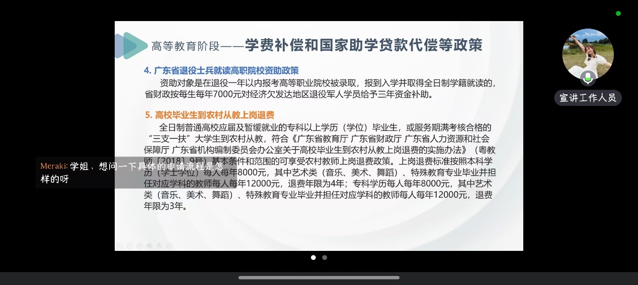 為了進一步擴大助學政策的傳播范圍,8月14日晚,汕頭三隊還舉辦了一場線上資助宣講會。宣講內容涵蓋了綠色通道、廣東財經大學獎助措施、資助政策信息獲取方式以及高等教育、高中和中職、義務教育、學前教育等各個階段的資助政策申請條件和流程。通過線上平臺,團隊成員們與廣大網友進行了互動交流,答疑解惑,有效提升了助學政策的知曉率和覆蓋面。