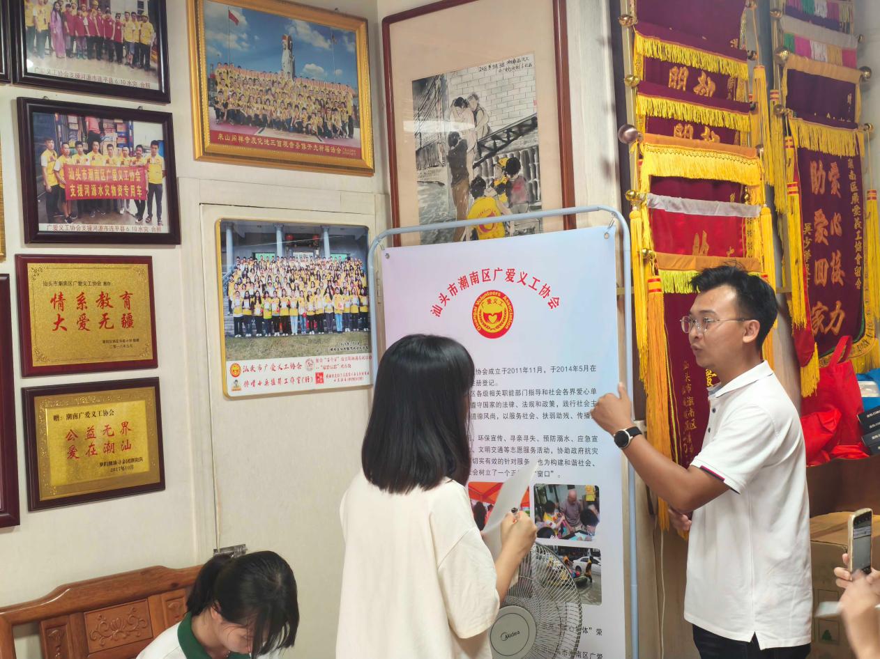 8月13日,實踐團來到汕頭市潮南區峽山街道,對汕頭市潮南區廣愛義工協會進行了深入采訪(以下簡稱“廣愛義工協會”)。廣愛義工協會自2014年在潮南區民政局注冊成立以來,始終秉承“奉獻、友愛、互助、進步”的志愿精神,長期開展幫扶慰問、應急宣講、環保宣傳、尋親尋失、愛心助學、無償獻血等多項志愿服務活動。