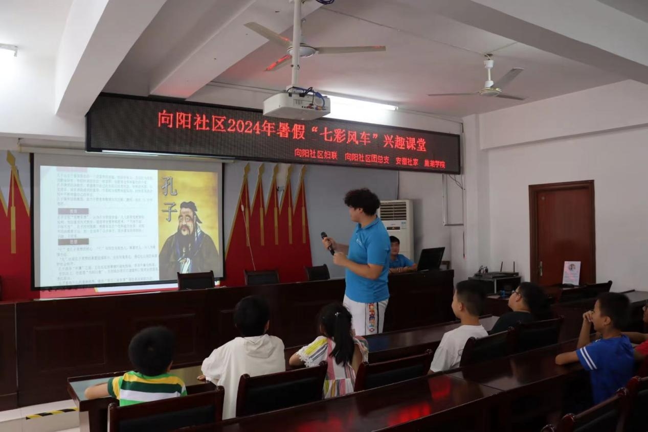 趣味啟智,課堂育能 7 月 17 日至 22 日,實踐團移步巢湖市鳳凰山街道向陽社區,受到工作人員的熱情接待與問候。活動前,團隊成員根據教學的學生年齡、文化水平等情況,精心設計了教學計劃,課程內容豐富多樣。國學課堂上,古韻悠悠,傳承千年智慧;詩詞教學中,妙語連珠,綻放文學魅力;安全教育時,警鐘長鳴,筑牢生命防線;心理課堂里,春風化雨,滋潤稚嫩心靈。