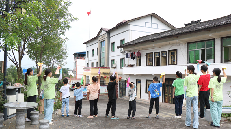 而最為激動人心的環節,莫過于放飛紙飛機活動。孩子們用彩筆在紙上寫下自己的夢想與心愿:“我想當老師。”“我想當科學家,發明許多對人類有用的東西。”……這些簡單卻真摯的話語,承載著孩子們最純粹的渴望。隨后,它們被孩子們用稚嫩的小手精心折疊成一架架精美的紙飛機,每一架紙飛機都仿佛被賦予了鮮活的生命,等待著飛翔的時刻。