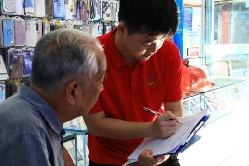 圖為突擊隊成員向當地居民進行調研 廣州新華學院李菁菁攝