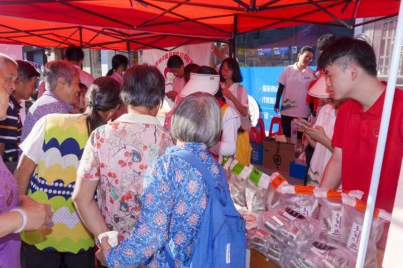 線下售賣引流圈客,線上直播點亮紛呈。“鄉”約潭下第四天,突擊隊現身熙熙攘攘的潭下鎮新華大道集市里,進行擺攤售賣各式各樣的月光糕產品。突擊隊隊員擔任“銷售員”盡管面臨語言不便的問題,但他們積極的態度和勇于嘗試新挑戰的精神,充分展現了團隊合作的“魅力”。都說萬事開頭難,但突擊隊的首單交易卻出奇地順利,這不僅證明了突擊隊團隊的實力,也極大地提升了士氣。擺攤售賣現場的熱鬧非凡,更是讓人感受到成功的喜悅。隨后,突擊隊精心策劃了3天的淘寶電商直播活動,其中最高一次直播達到8.2萬次點贊,直播熱度沖到生鮮甄選小時榜第2名,直播效果顯著。通過電商直播,不但展示了潭下月光糕的獨特風味,還深入傳播了其中蘊含的傳統文化與故事,使屏幕前的觀眾感受到了這份來自潭下鎮的甜蜜與溫情。這種創新的營銷策略不僅提升了月光糕的市場知名度,也為其他特色食品的推廣提供了寶貴的經驗和參考。
