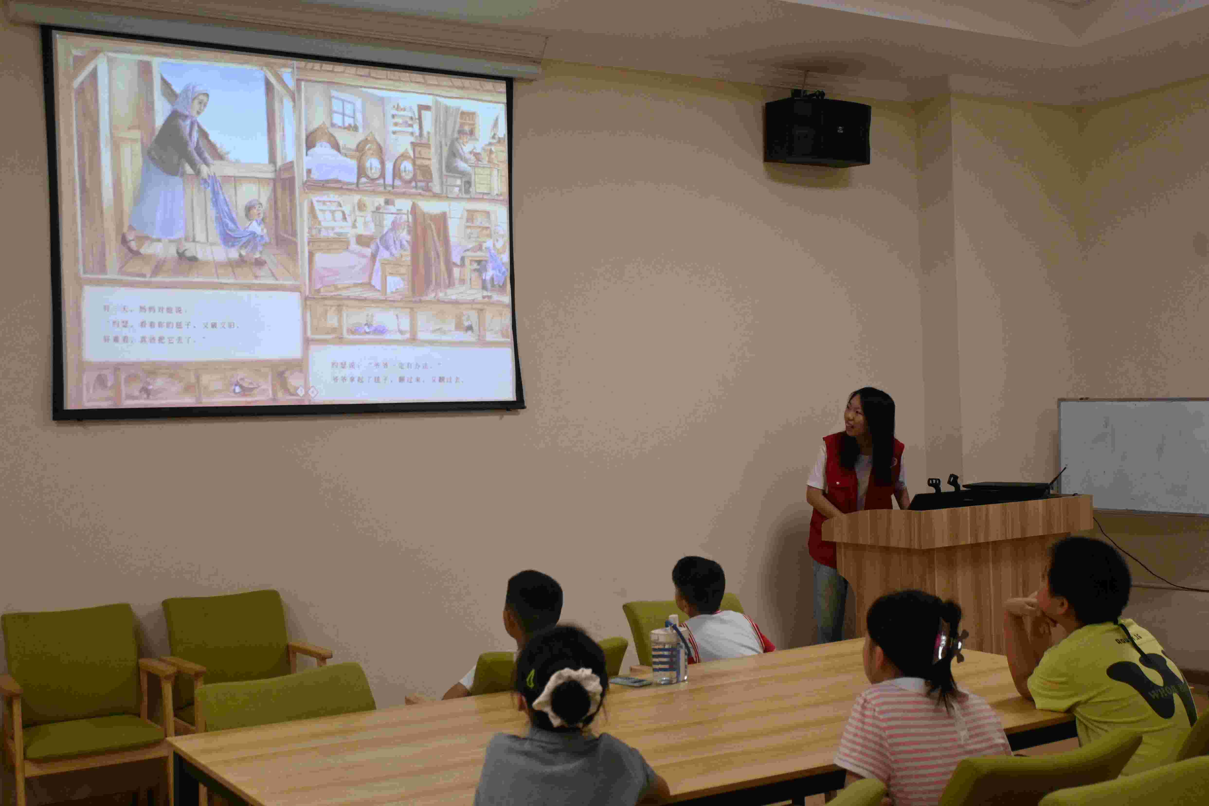 圖1為實(shí)踐團(tuán)成員帶領(lǐng)社區(qū)孩子共讀繪本《爺爺一定有辦法》。張雨晨 供圖