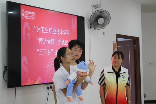 圖為實(shí)踐團(tuán)向大家展示嬰兒版的海姆立克急救法。劉向杰 供圖