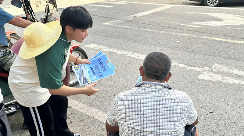 圖為實踐隊員發放交通安全知識傳單。王彥偉 供圖