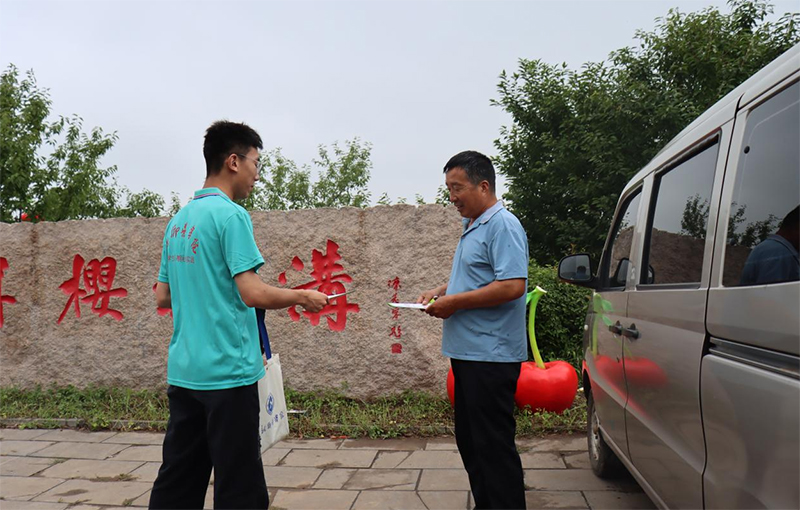 (圖為櫻桃溝調研隊員們發放宣傳冊)