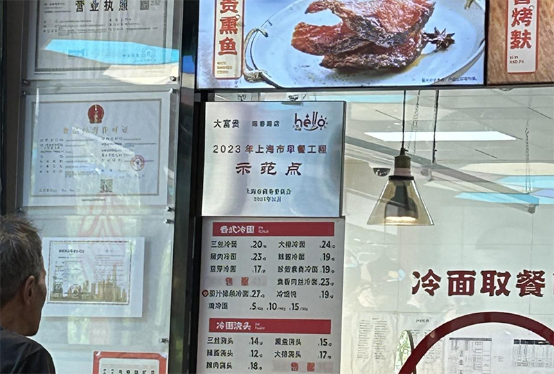 圖為上海大富貴早餐示范點(diǎn)銅牌 陸雨辰 攝