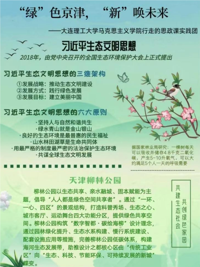 帶著對(duì)于新質(zhì)生產(chǎn)力的思考,大連理工大學(xué)馬克思主義學(xué)院的青年學(xué)子們,肩負(fù)著探索與實(shí)踐的重任,踏上了“‘綠’色京津,‘新’喚未來(lái)”的社會(huì)實(shí)踐之旅。此次旅程,聚焦“綠色生產(chǎn)力助力可持續(xù)發(fā)展”這一主題,采用主題式、內(nèi)涵式的實(shí)踐思維邏輯,前往京津地區(qū)七個(gè)實(shí)踐地點(diǎn),包含農(nóng)業(yè)、工業(yè)、制造業(yè)等各個(gè)領(lǐng)域,這不僅僅是在京津的廣袤大地上尋找綠色的足跡,更是在這里感受新質(zhì)生產(chǎn)力蓬勃發(fā)展的脈動(dòng),體驗(yàn)科技創(chuàng)新與生態(tài)文明建設(shè)的和諧共生。