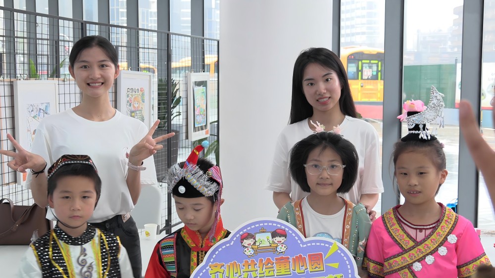 圖為石榴花開實踐隊成員和體驗民族服飾的小朋友合影。余璐 供圖