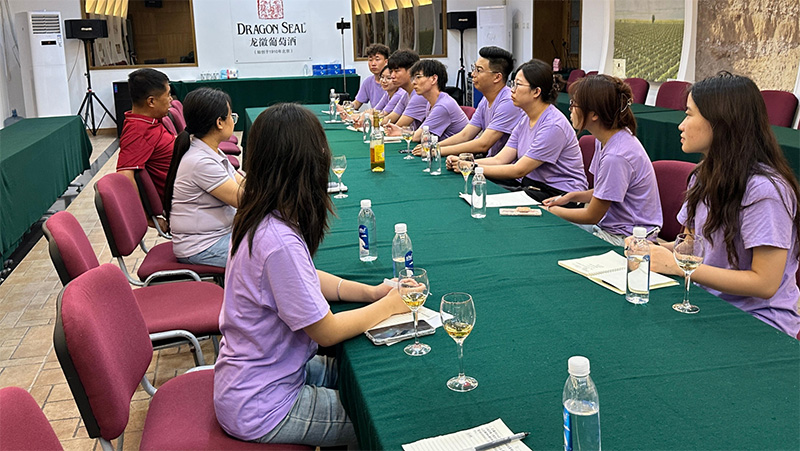 參觀過后,北京龍徽釀酒有限公司楊永峰與實(shí)踐團(tuán)的成員進(jìn)行了一場(chǎng)座談會(huì),熱情地解答了同學(xué)們的疑惑,對(duì)實(shí)踐團(tuán)的活動(dòng)高度贊許,鼓勵(lì)同學(xué)們要學(xué)好專業(yè)課程,筑牢專業(yè)基礎(chǔ),豐富專業(yè)知識(shí),積極參與葡萄酒釀造的實(shí)踐,百聞不如一見,百見不如一干。不忘初心,牢記使命,為葡萄酒事業(yè)增添自己的一份力量。