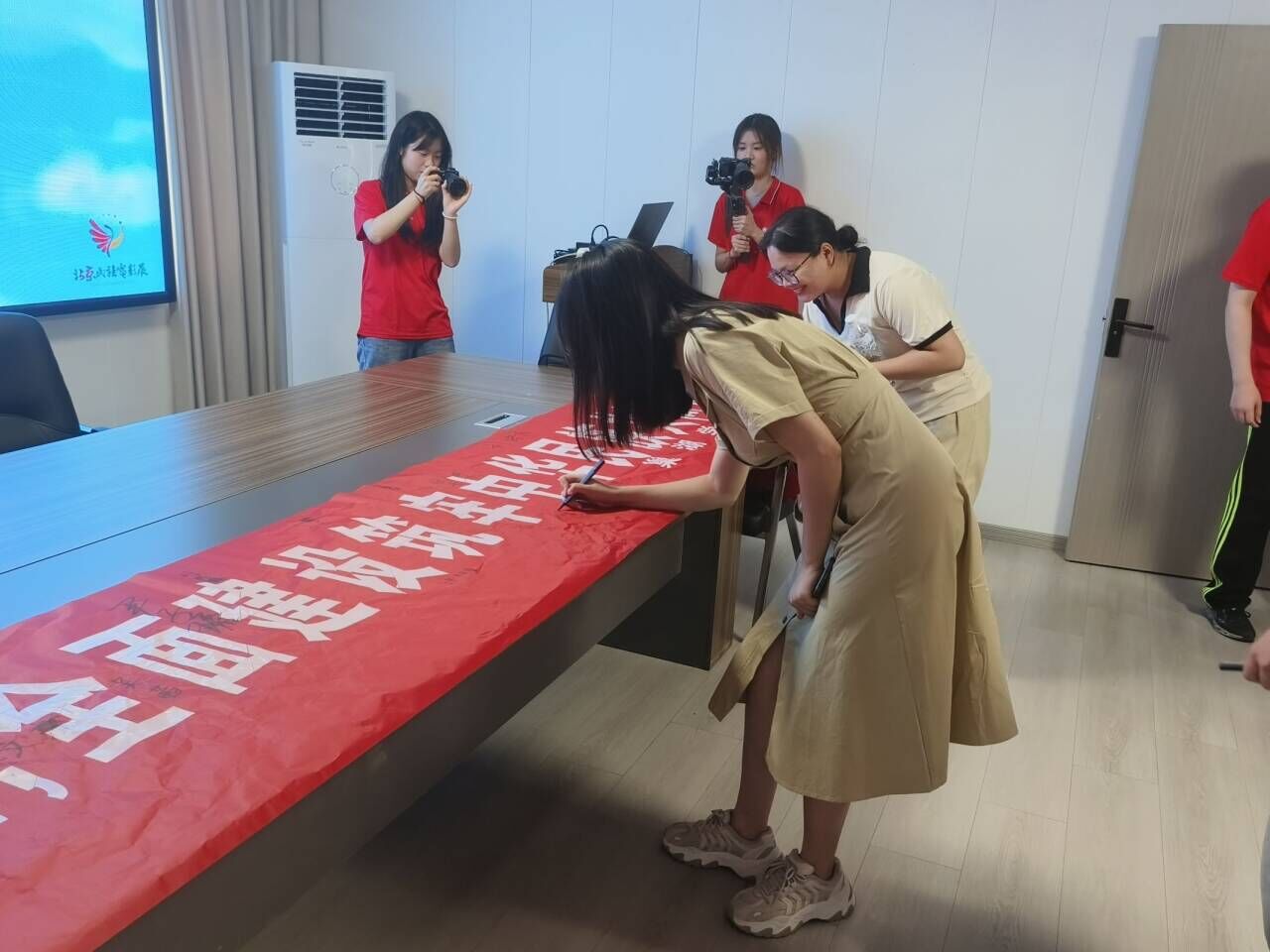最后,隊友們對繪畫進行了評獎評優,同時邀請獲獎成員進行頒獎儀式,由隊員們親手送上獎品。頒獎儀式結束,全體成員上臺在橫幅上簽下自己的名字。至此,本次活動圓滿結束。