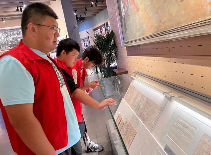 圖為隊員參觀渡江戰(zhàn)役有關(guān)文獻(xiàn)。多彩大學(xué)生通訊員 劉恒杉 攝
