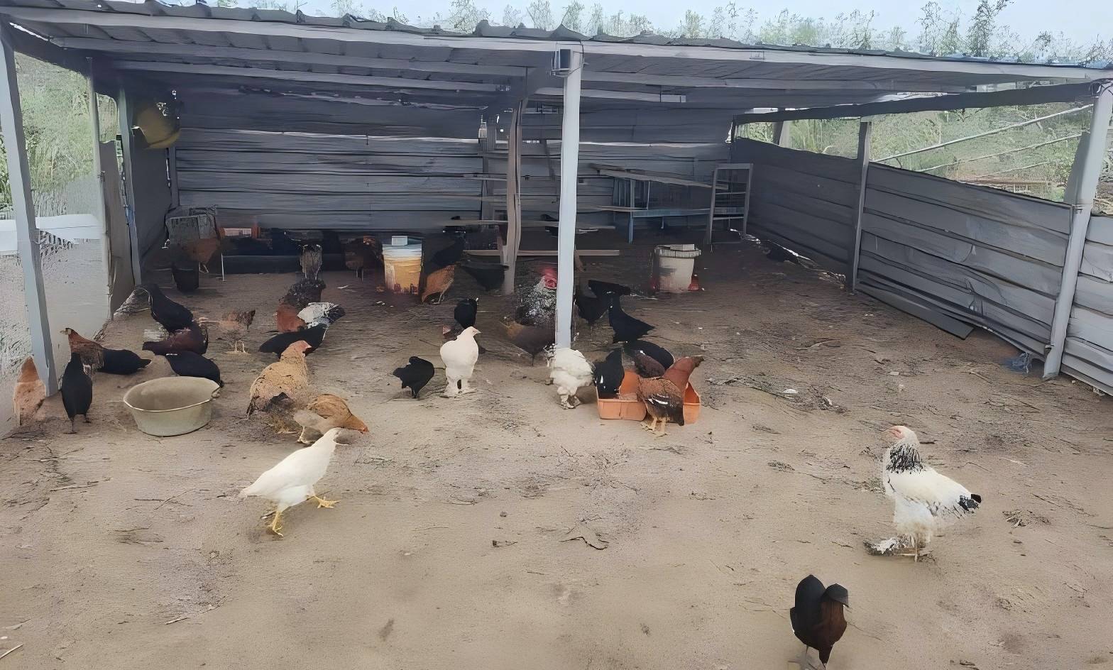 在鄉村振興的大背景下,養殖場積極探索與推廣特色養殖項目,黑羽綠殼蛋雞養殖逐漸嶄露頭角,成為當地農民增收致富的新方式。實踐團隊成員為了解當地黑羽綠殼蛋雞養殖養殖方式,2024年8月20日,團隊成員前往十二團養殖場開展志愿服務。