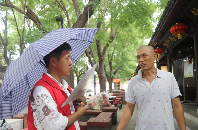 在發(fā)放問卷過程中,隊員們向市民和游客們宣傳講解了楊柳青年畫的歷史淵源、畫作內(nèi)涵與技法特點,并邀請他們前往楊柳青古鎮(zhèn)親身體驗。隊員們還向來自尼日利亞的天津大學(xué)留學(xué)生進行宣傳交流,向外國友人解釋特定的歷史文化概念,使其對楊柳青年畫與相關(guān)的非遺文化產(chǎn)生了濃厚的興趣。