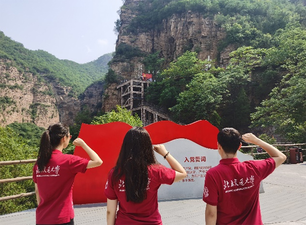 青年洞前,實踐團的黨員在鮮紅的黨旗下重溫入黨誓詞,表達了對新中國建設者們最深沉的敬意。大家紛紛表示,要充分發揮專業優勢,理論與實際相結合,講好紅旗渠精神的故事,講好交大故事,以先進科研成果為中國特色社會主義建設提質增效。