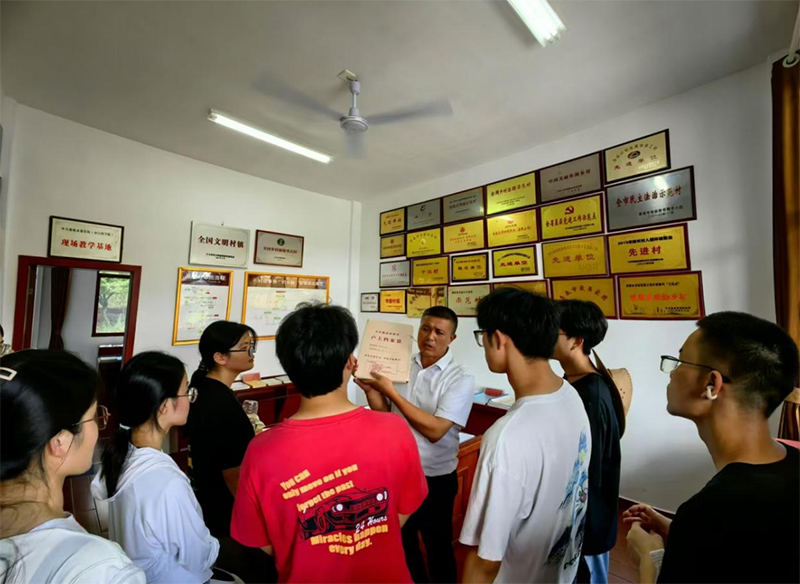 油溪橋村村干部為團隊講解油溪橋村從一個貧困落后的小村發展為如今國家著名的脫貧村的歷史與如今油溪橋村的發展情況。通過此次講解,實踐團成員對油溪橋村有了更為直觀清晰的了解。