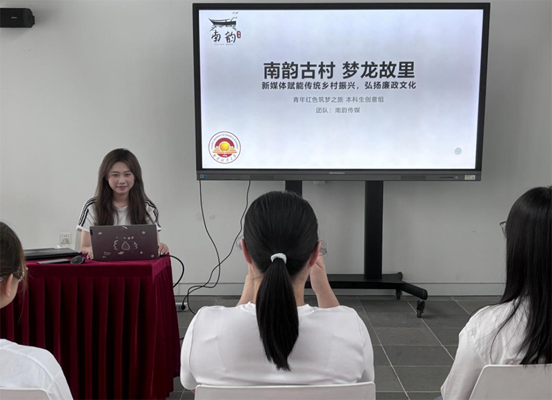 圖為新聞學院南韻傳媒團隊在會議室宣講 祝雨詩 供圖