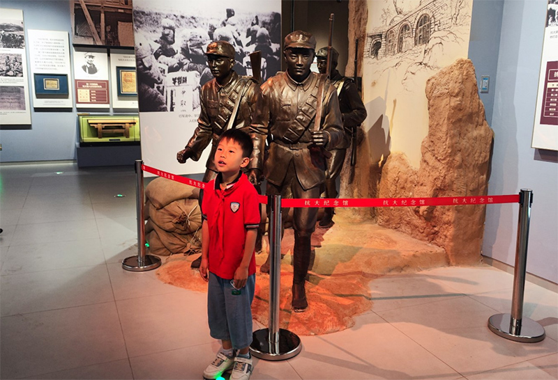 圖為實踐隊員聆聽“小小講解員”講解抗日軍政大學校歌,韓子羿 供圖