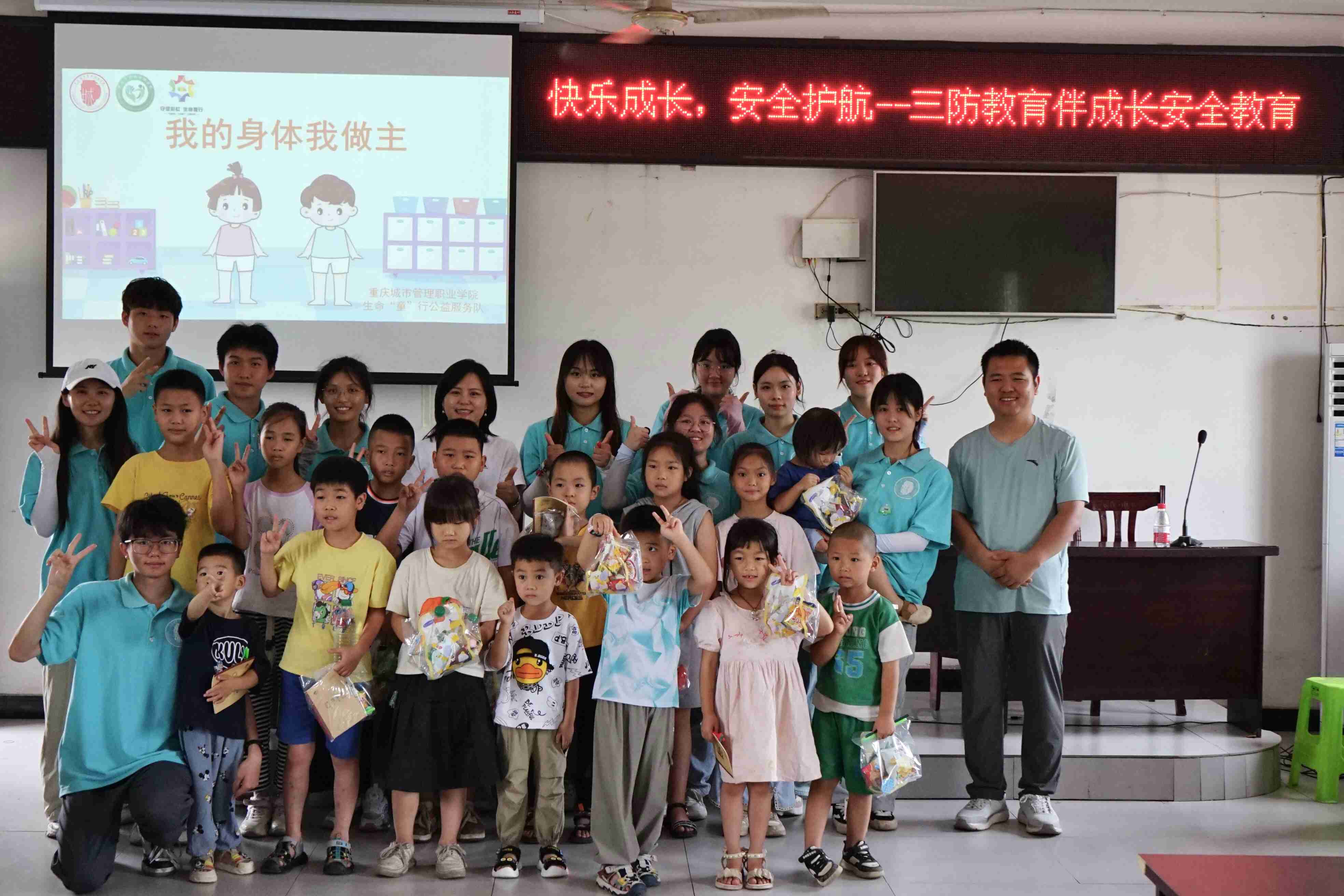近年來,兒童遭受性侵害的案例呈現高發趨勢。兒童好奇好動,愛探索,生活經驗貧乏,自我保護能力差,是社會成員中最脆弱、最容易受到傷害的弱勢群體。在重慶永川區板橋鎮涼風埡村,留守兒童數量較多,由于家庭監護的缺乏和學校教育資源的相對不足,性知識教育一直處于空白狀態。為此,2024年7月16日,重慶城市管理職業學院生命“童”行公益服務隊在涼風埡村開展了“我的身體我做主”兒童性知識教育普及活動。