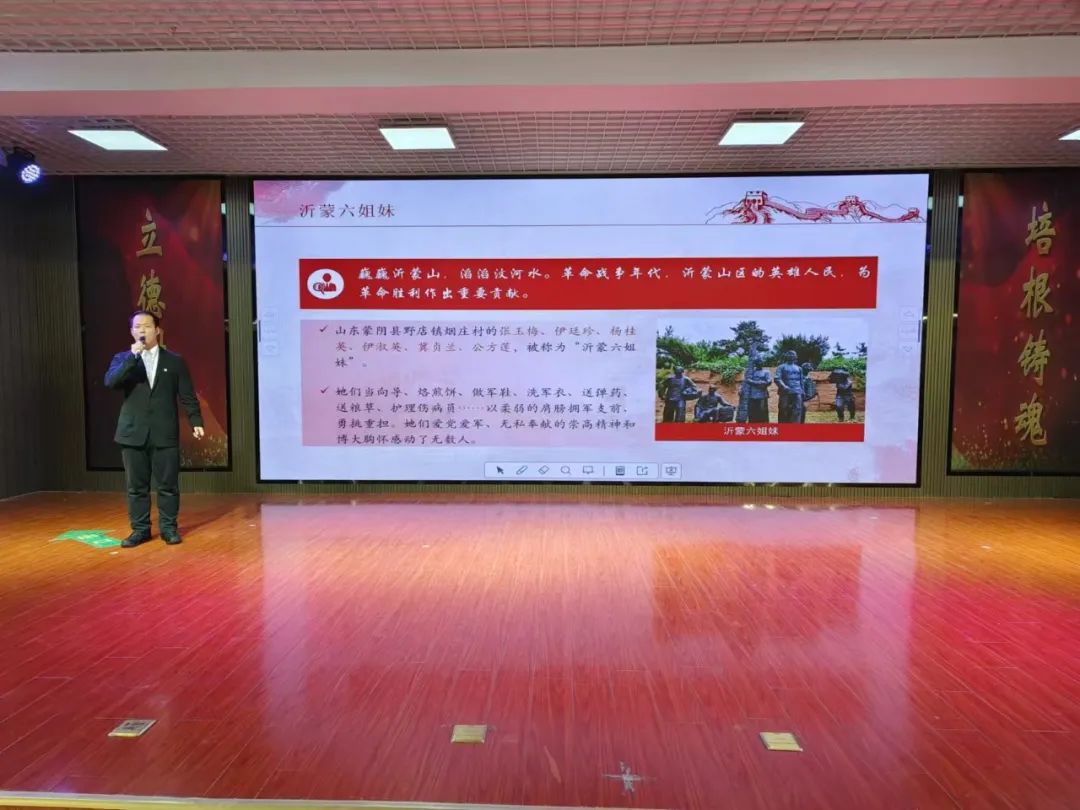 活動伊始,由邵惠琪同學向大家介紹沂蒙精神的發源地,以及他們大無畏的精神。她用鏗鏘有力的聲音讓同學們更快融入沂蒙精神,更好傾聽英雄故事。