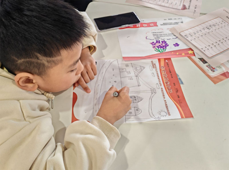 我的家鄉我來夸 之后,志愿者們帶領大家回顧了長征這一壯麗史詩。“終見‘善無’變善有,已將沙洲變綠洲”,在21世紀的新時代,我們更要珍惜與欣賞這先輩們崢嶸奮斗后所留下的大好河山。因此,志愿者們引導小朋友深入了解自己的家鄉。他們邀請每一位小朋友來分享自己家鄉的傳統習俗,小朋友們非常積極地介紹了家鄉的傳統文化和獨特的節令,共同探尋了中華民族燦爛文化的多樣性,將家鄉中的特色都分享給了身邊的伙伴。此外,課程還組織觀看了《航拍中國》,以更直觀的視角領略祖國的大好河山,激發大家對家鄉和祖國的熱愛之情。最后,大朋友們與小朋友們共同合作,在《夸夸我的家鄉好》學習單上畫出了自己家鄉的優美風景,這成為了每位小朋友對家鄉印象的獨特回憶。