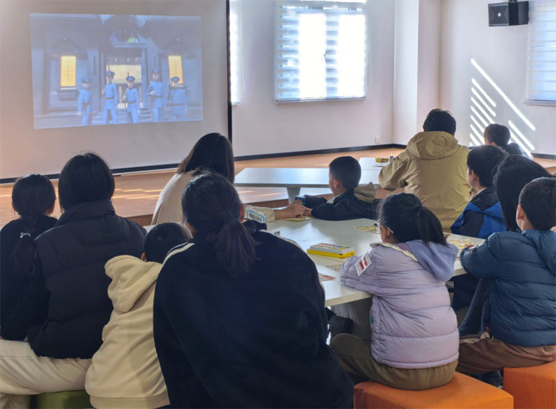 孩子們觀看“南昌起義”視頻 霆霓益行攝