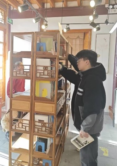 與此同時,在上河書房,“陽光志愿團”的同學們承擔整理書架和打包書本的任務,他們耐心細致地將每一本書分類歸位,確保書籍整齊擺放,方便讀者查找。為了完成這一工作,他們不僅需要細致地核對書籍分類編號,還要時刻保持對書架整體布局的關注,力求每一個細節都做到完美。同學埋頭在書架間忙碌,仔細核對書籍的標簽和編號,將同一類別的書籍歸攏放在一起。