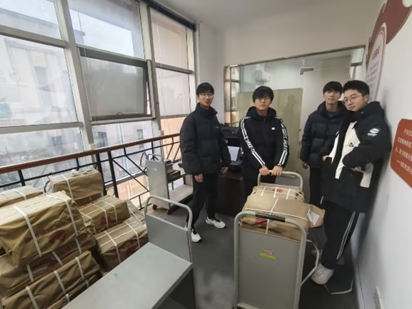 活動中,“愛心志愿隊”早早抵達圖書館,在工作人員的指導下,他們迅速組建了一個“搬書小隊”,整個流程分工明確:有人負責在書庫內將書籍分類整理并打包,有人負責圖書搬運,而剩下的同學則將書籍有序擺放到指定位置。書庫內的空氣略顯潮濕,書籍的重量超出了預期,但志愿者們依然干勁十足。有些書籍因為年代久遠,封面已經破損,堆積時需要特別小心。同學們耐心地將書一摞一摞整理好,再用力抱起,緊貼胸口,確保不會有任何一本掉落或損壞。