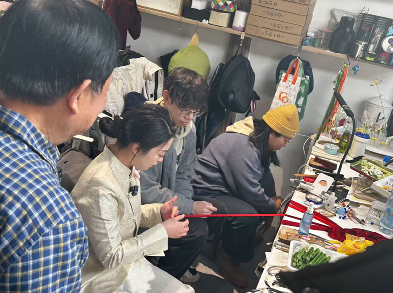 訪談結束后,臻于至善·以新致勝實踐團有幸現場觀摩趙樹憲先生及其徒弟制作絨花的全過程。