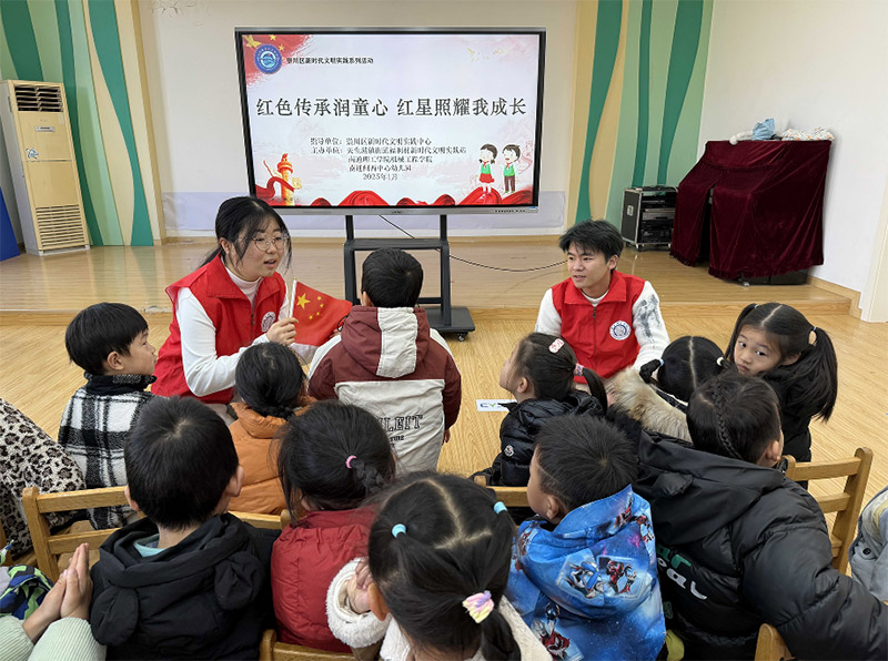 為進一步加強青少年愛國主義教育,培養孩子們對黨和國家的深厚情感,南通理工學院紅跡尋訪團聯合南通市崇川區天生港鎮街道福利村工會、團總支、婦聯、關工委于1月9日在南通市崇川區天生港街道閘西中心幼兒園開展了“紅色傳承潤童心,紅星照耀我成長”主題實踐活動。