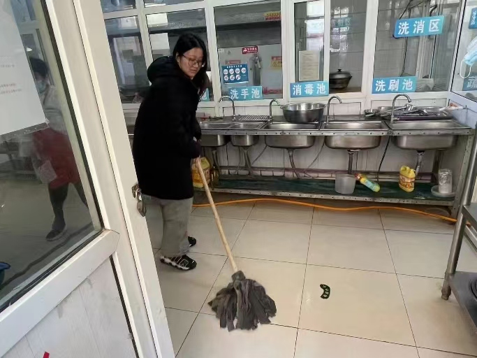 首先實踐團成員們在負責人的帶領下幫忙打掃了院內的衛生,把關愛付諸實際行動。成員們積極的擦窗戶、拖地、整理桌面等,團隊的每一位成員都竭力為老人們營造一個溫馨舒適的居住環境。