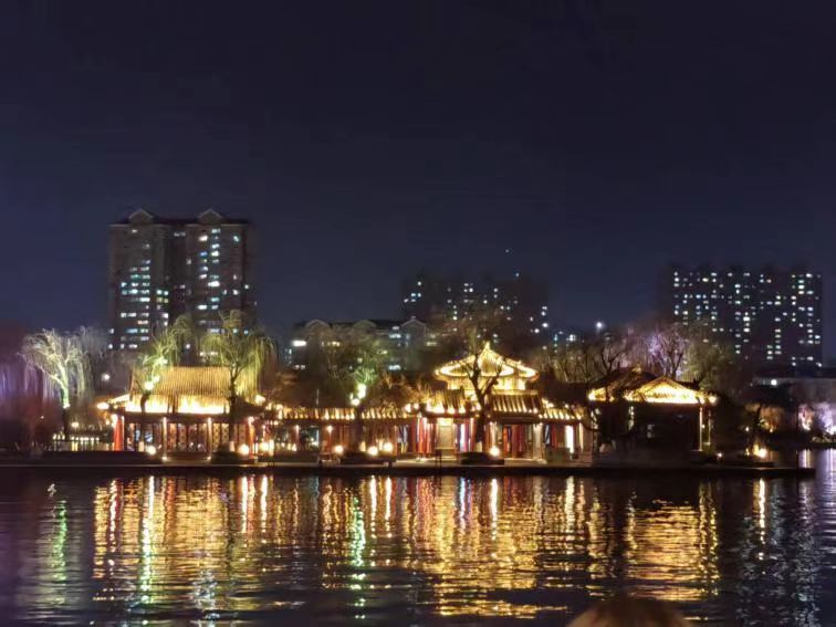 【圖為濟南大明湖畔的夏雨荷花燈】