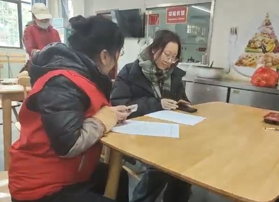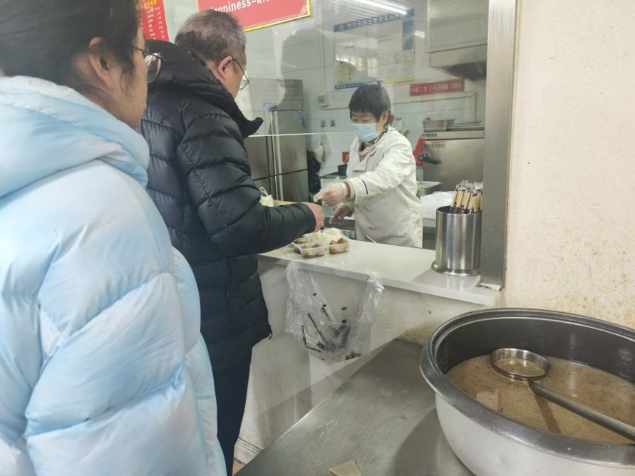 1月10日上午,實踐隊出發奔赴首個探訪地點——武漢市武昌區徐家棚街道水岸星城社區長江康養頤養中心。成員們進入食堂時正值飯點,空氣中彌漫著溫馨的飯菜香氣。工作人員們忙碌而有序,他們熱情地為老人們打飯、打包。許多老年人來到這里就餐,享受著熱氣騰騰的飯菜,也有部分老人選擇將飯菜打包帶回家,這份溫暖的餐食,仿佛也承載著家的味道。