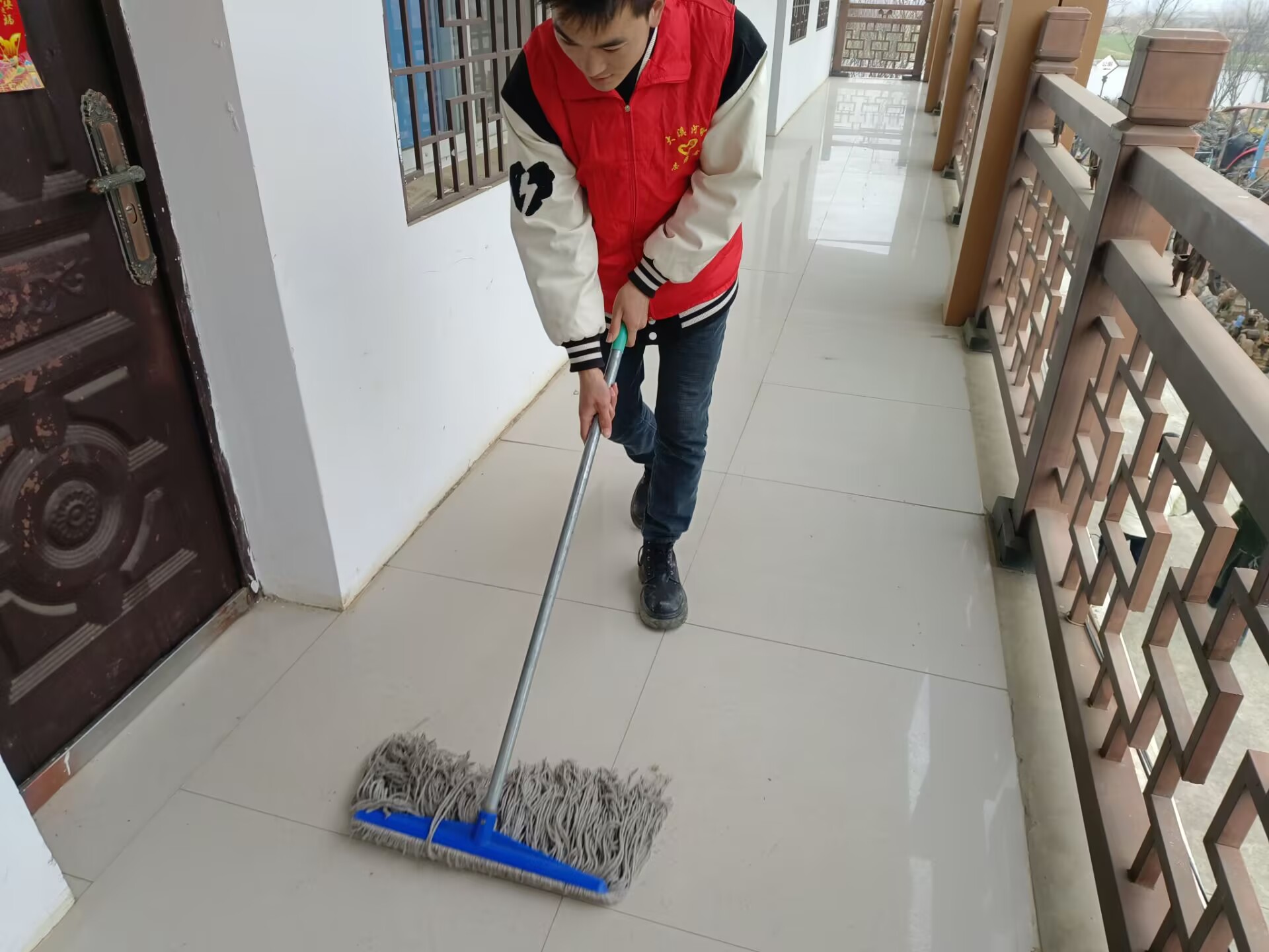 活動中,同學們發揚不怕臟、不怕累的精神,認真清理地面垃圾、擦拭公共設施、整理雜物,并對衛生死角進行了徹底打掃。有的同學負責清掃村委會門前的落葉和雜物,有的同學則專注于擦拭村委會的宣傳欄和桌椅,還有的同學對村委會周邊的道路進行了清理。大家分工明確,配合默契,現場氣氛熱烈而有序。