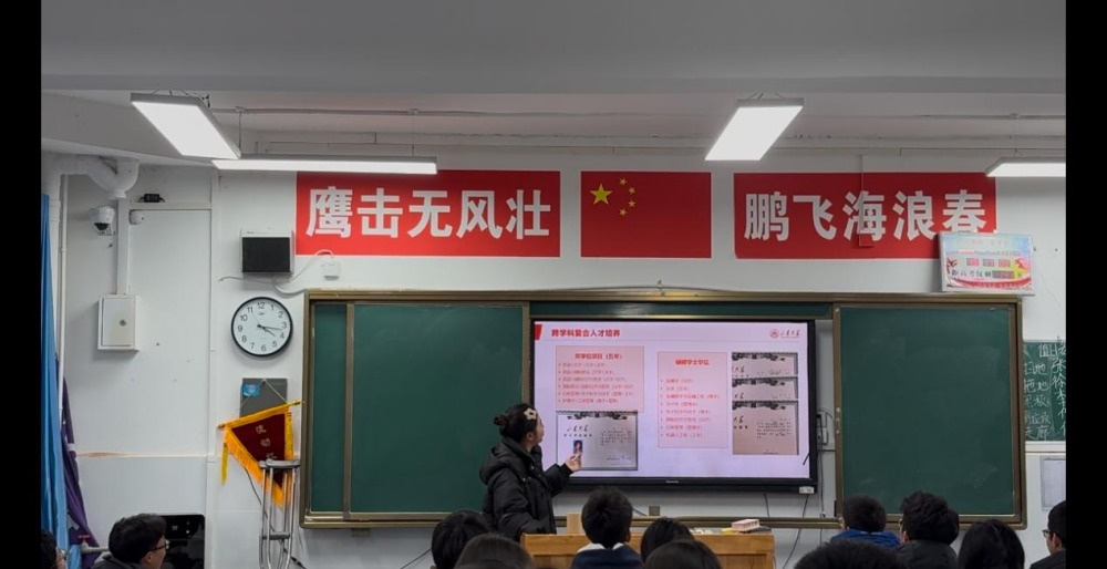 宣講的內容,我主要圍繞三個方面展開。首先,我向他們介紹了山東大學,作為中國知名的綜合性大學之一,山東大學擁有優秀的師資力量、豐富的學術資源和良好的教育環境。我希望能通過我們的視角,讓他們更加具象地了解這所百年老校,從而在他們心中種下一顆向往的種子。其次,我分享了學習方法,并解答了他們生活中的困惑,希望他們能在學習的過程中少走彎路,找到適合自己的節奏,為高考增添信心,減少遺憾。最后,我留下了聯系方式,以便他們在報考時隨時向我們咨詢,解決力所能及的問題。