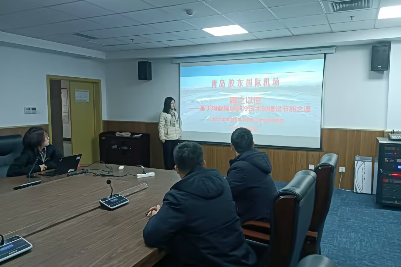 為探索陶瓷輻射制冷技術在大型公共建筑中的應用潛力,助力機場建筑節能降耗,山東大學機電與信息工程學院“瓷之以恒”調研團于2025年2月8日前往青島膠東國際機場開展實地調研,與機場節能項目負責人閆昊、潘偉鵬、李婧琨進行深入交流,深入了解機場在建筑節能領域的創新實踐與技術需求。
