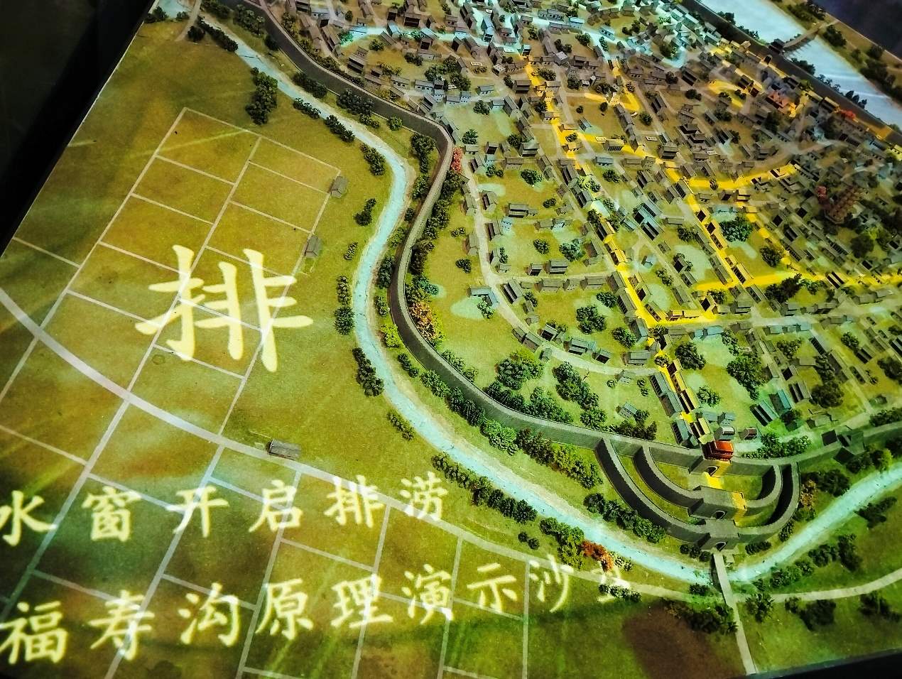 隨后,我們來到了模型展示區。這里通過精致的沙盤模型,生動直觀地展現了福壽溝的整體布局以及與贛州古城的關系。可以看到,福壽溝巧妙地利用了贛州城的地形地勢,構建起一個龐大而復雜的排水網絡,將城內的雨水和生活污水有序地排出城外。模型中還設置了動態演示,模擬了暴雨天氣下福壽溝的排水運作過程,讓人對其科學精妙的設計贊嘆不已。