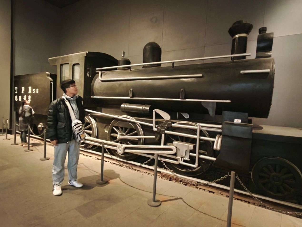 圖為實踐隊員參觀近代火車頭。通訊員 蔡少文 供圖