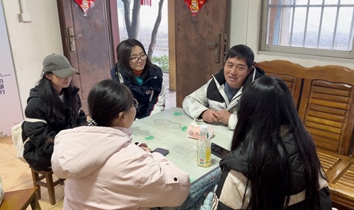 圖為實(shí)踐團(tuán)隊(duì)隊(duì)員與村民王德利交談。蘇文慧供圖