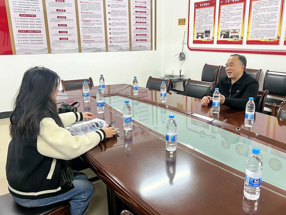 圖為實(shí)踐團(tuán)隊(duì)隊(duì)員對(duì)全州縣文旅局相關(guān)領(lǐng)導(dǎo)進(jìn)行采訪。蘇文慧供圖