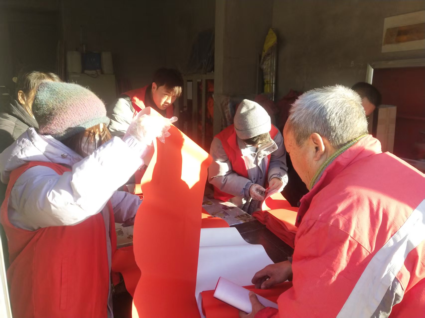 在河南,陜西的團隊成員宋翔宇·閆朝陽積極投身于社區服務中,在地方社區的帶領下開展,為社區群眾派發春聯,寫春聯,宣傳禁止燃放煙花爆竹等公益服務