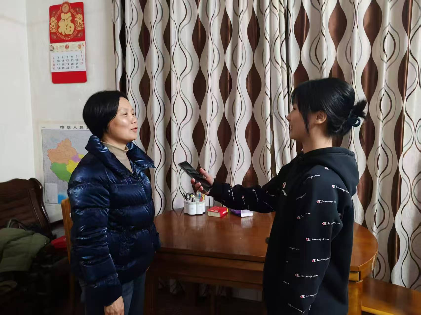 圖為團隊成員在石灣中學覃其晏、黃紅梅老師家里進行采訪