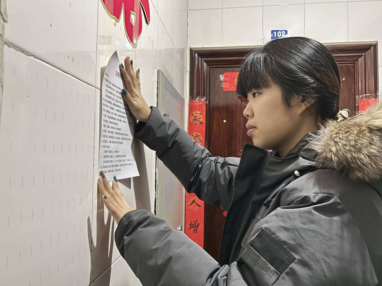 臘月的冬日,寒風(fēng)刺骨,卻依然阻擋不了實(shí)踐隊(duì)員陳宜君開展法制宣傳的熱情。實(shí)踐隊(duì)員陳宜君了解到,將軍頭社區(qū)人口老齡化嚴(yán)重,同時(shí)有較多當(dāng)?shù)丶巴獾氐牡膫(gè)體經(jīng)營戶。為了全面了解居民的整體法制素養(yǎng),實(shí)踐隊(duì)員陳宜君打算采取抽樣調(diào)查的方式,從每棟樓分別抽取幾戶逐個(gè)走訪調(diào)查。在調(diào)查開始前,實(shí)踐隊(duì)員陳宜君提前制定了一份法制知識(shí)調(diào)查問卷,內(nèi)容涵蓋《刑法》《民法《經(jīng)濟(jì)法》等各方面。隨后,實(shí)踐隊(duì)員陳宜君分別走進(jìn)抽取的住戶家中,向他們闡明自己的來意,住戶們表示歡迎與理解,都自愿參與法制普查。