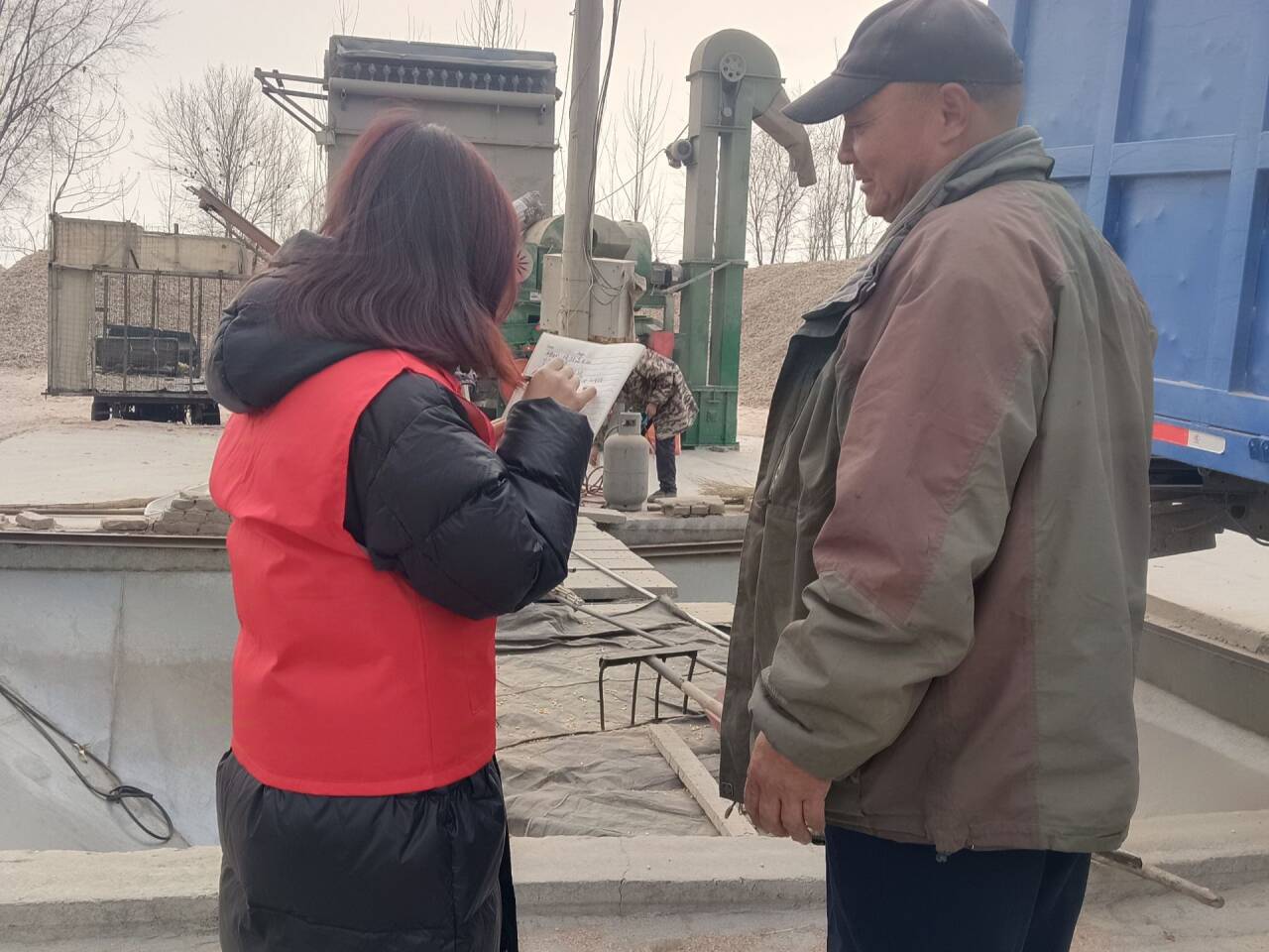 圖為實踐隊員在收購站進行調(diào)研記錄。