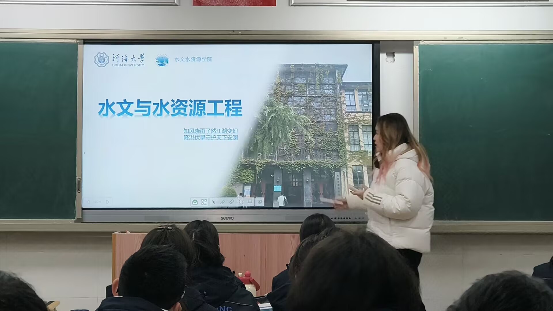 最后,團隊成員陶哲在班級進行總結并接受學弟學妹們的提問。很多同學積極參與了提問環節,相信通過這些提問,他們對于河海大學會更加了解,也會學到不一樣的學習經驗。