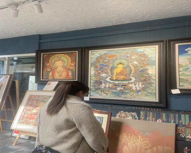 圖為實踐隊員參觀曼唐藝術館,欣賞和宣傳唐卡藝術。索南才卓 供圖