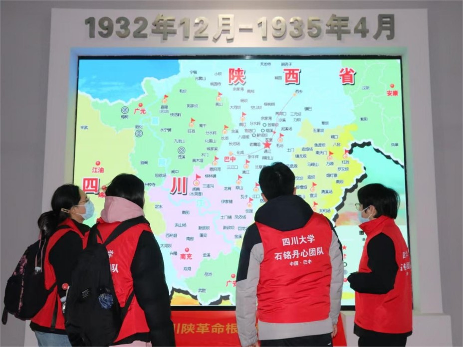 圖為團隊成員了解川陜革命根據地歷程 王子軒攝