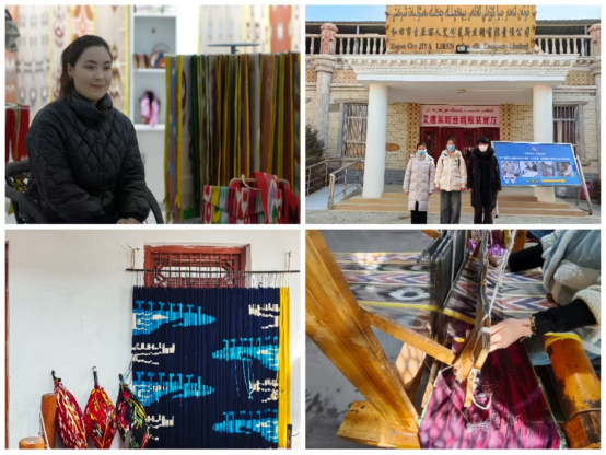 探尋艾德萊絲綢的誕生地 1月27日,社會實踐的最后一站,小隊來到了和田市吉亞鄉,這里是艾德萊斯綢的重要產地之一。在吉亞鄉吉亞麗人的手工作坊中,隊員們親眼見證了艾德萊絲綢的制作過程,同時,也從講解員的口中了解到,從紡絲、染色到織造主要有六道工序,每一道工序都是傳統的手工工藝,凝聚著匠人們的智慧與心血,這些僅用傳統的木制織機,主要依靠手工藝者的精湛技藝進行制作的綢緞,展現了這種傳統非遺工藝從古至今的探索和傳承,每一匹艾德萊斯綢都獨一無二,充滿了藝術生命力。在參觀完手工作坊后,小組成員還對講解員進行了采訪,了解了艾德萊斯綢的過去、現在以及未來,隨著社會的發展進步,手工藝人也會不斷創新發展,將傳統工藝與現代理念相結合,引入更多人才,注入新的活力,將艾德萊斯綢推向更廣闊的市場。