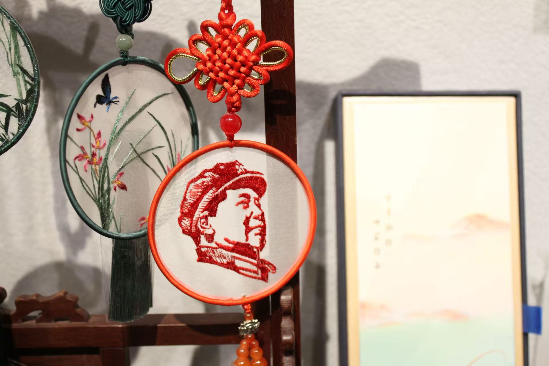 剛走進湘繡工作室,一幅巨大的湘繡作品便吸引了所有人的目光。那是一幅描繪百鳥朝鳳的繡品,鳳凰的羽毛栩栩如生,每一根都仿佛在陽光下閃爍著光芒,鳥兒們形態各異,或振翅高飛,或低頭梳理羽毛,眼神靈動,仿佛下一秒就要從繡布上飛出來。細膩的色彩過渡,從深到淺,自然而流暢,讓人不禁驚嘆繡工的精湛。