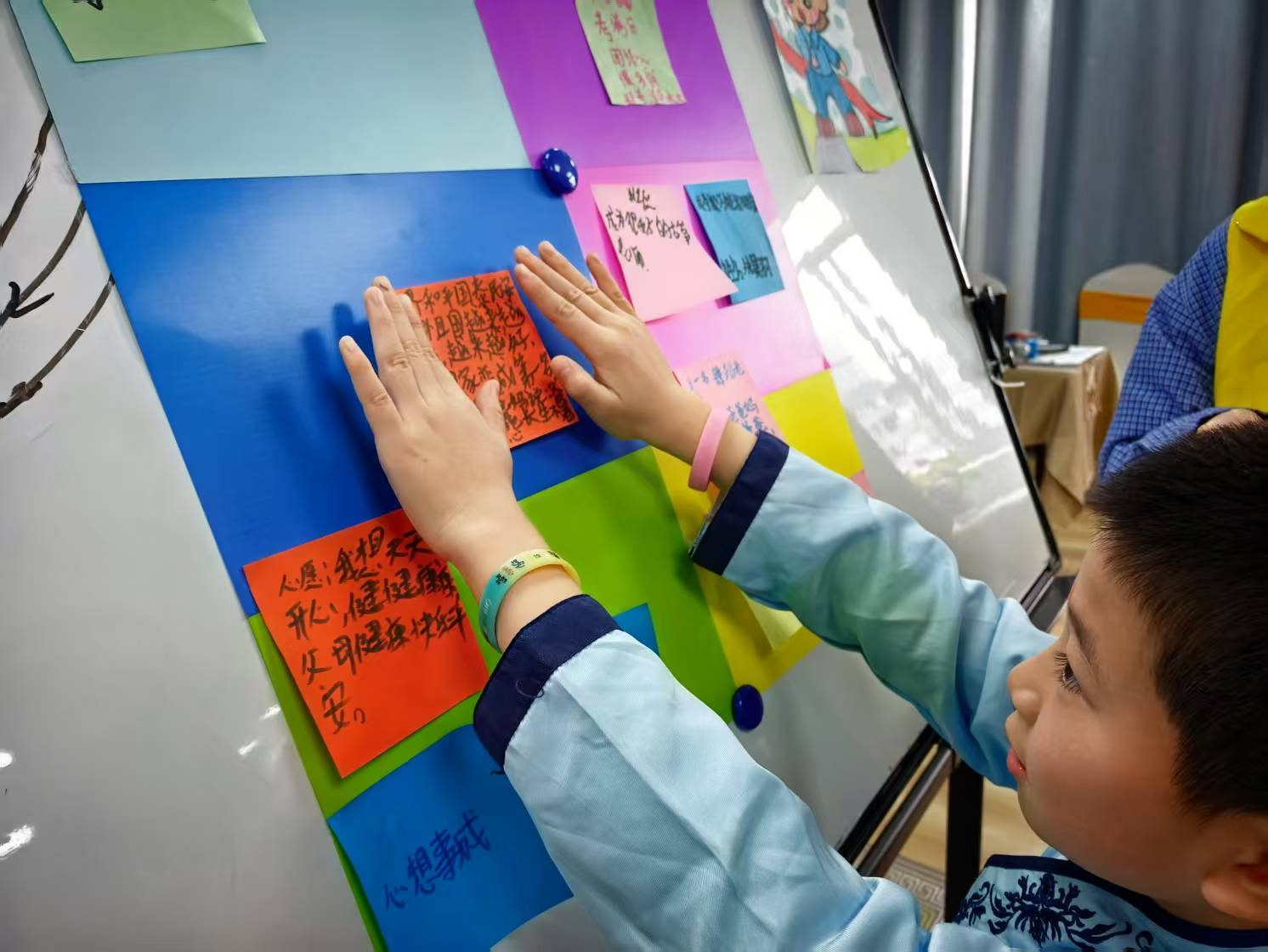 《一封家書》環節將活動的溫情推向頂點。志愿者先分享自己的親情故事,啟發孩子們思考家的含義。在情感的感染下,孩子們拿起筆,一筆一劃寫下對家人的牽掛與祝福。“希望爸爸媽媽身體棒棒的”“祝爸爸媽媽每天都開開心心”“好想一直待在爸媽身旁”……質樸的話語從生疏的筆觸間流出,寫滿對家人的眷戀。志愿者帶著孩子們把這些信件貼在“心愿墻”上,愿每一份期待都能成真。
